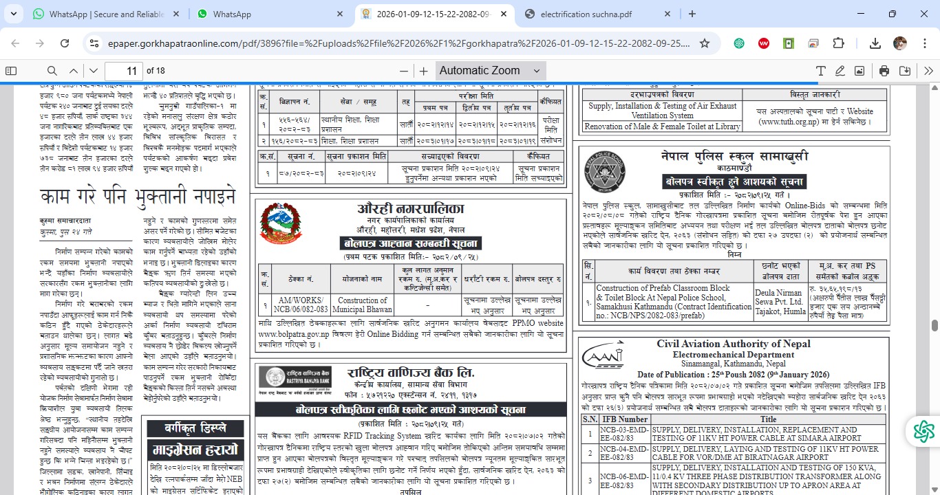बोलपत्र आहवान सम्बन्धी सूचना। Construction of Municipal Bhawan